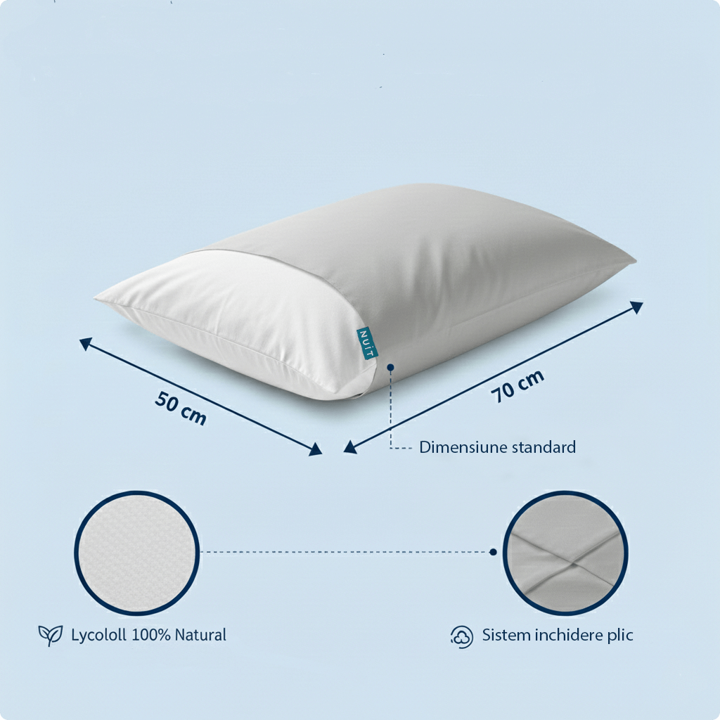 Fibrele Lyocell, obținute din celuloză de lemn, reglează excepțional de bine temperatura. Materialul absoarbe și eliberează rapid umiditatea, prevenind supraîncălzirea și menținând un microclimat uscat și răcoros pe tot parcursul nopții. Trezește-te odihnit și plin de energie.